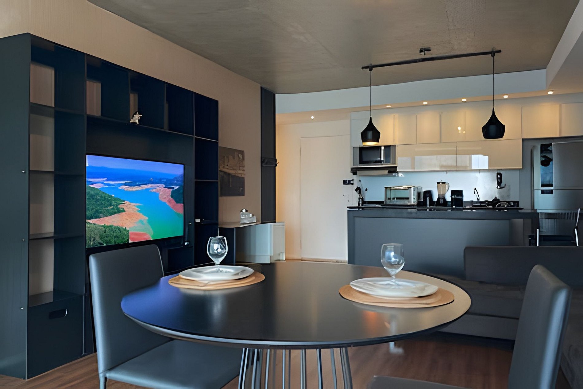 O Apartamento é completo com 01 dormitório com cama de casal Queen e suíte, sala de estar mobiliada com smart TV, wi-fi e mesa de trabalho. Cozinha completa com geladeira, fogão, microondas, cafeteira, liquidificador, copos, pratos, panelas, talheres. Por fim, enorme e confortável varanda com sofá e vista para a Ponte Estaiada. O Condominio GEO Berrini dispõe de segurança 24hs, espaço coworking, salas privativas de reunião, wi-fi, academia, confortável living com jardim externo, salão de festas gourmet.